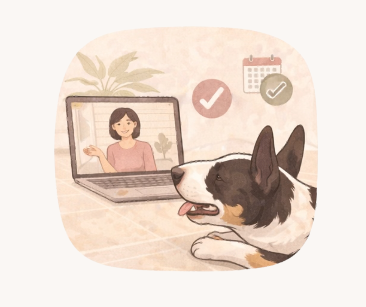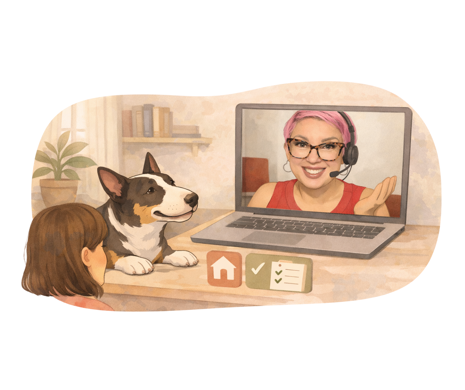 Separation anxiety, compulsive behaviors, and stress-based struggles happen in your dog’s real environment — your home, your routine, your daily life. That’s why virtual work isn’t a compromise. It’s often the most effective option.